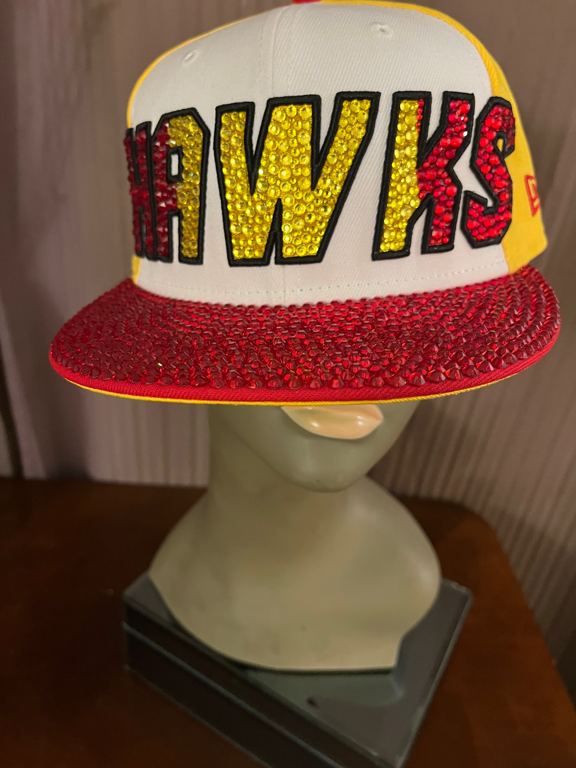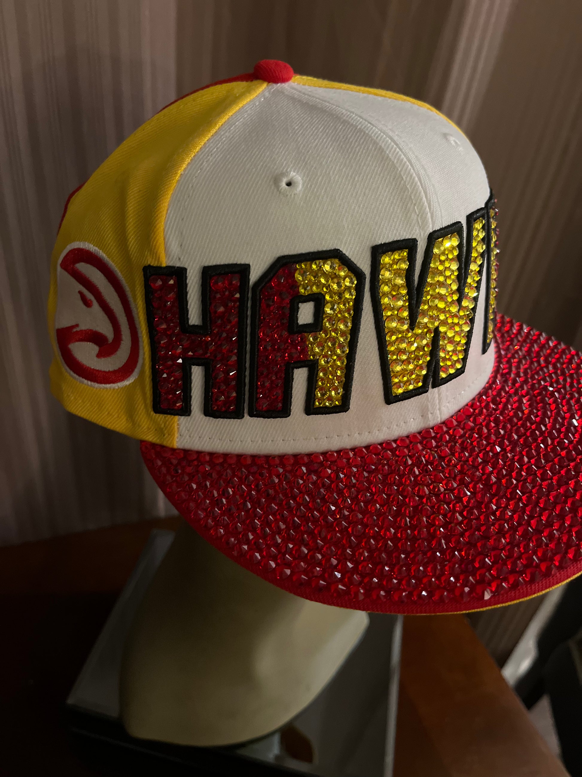 This Blinged out Atlanta Hawks fitted cap features siam and citrine high-quality rhinestones carefully hand-placed with attention to detail... This baby is guaranteed to get you noticed!